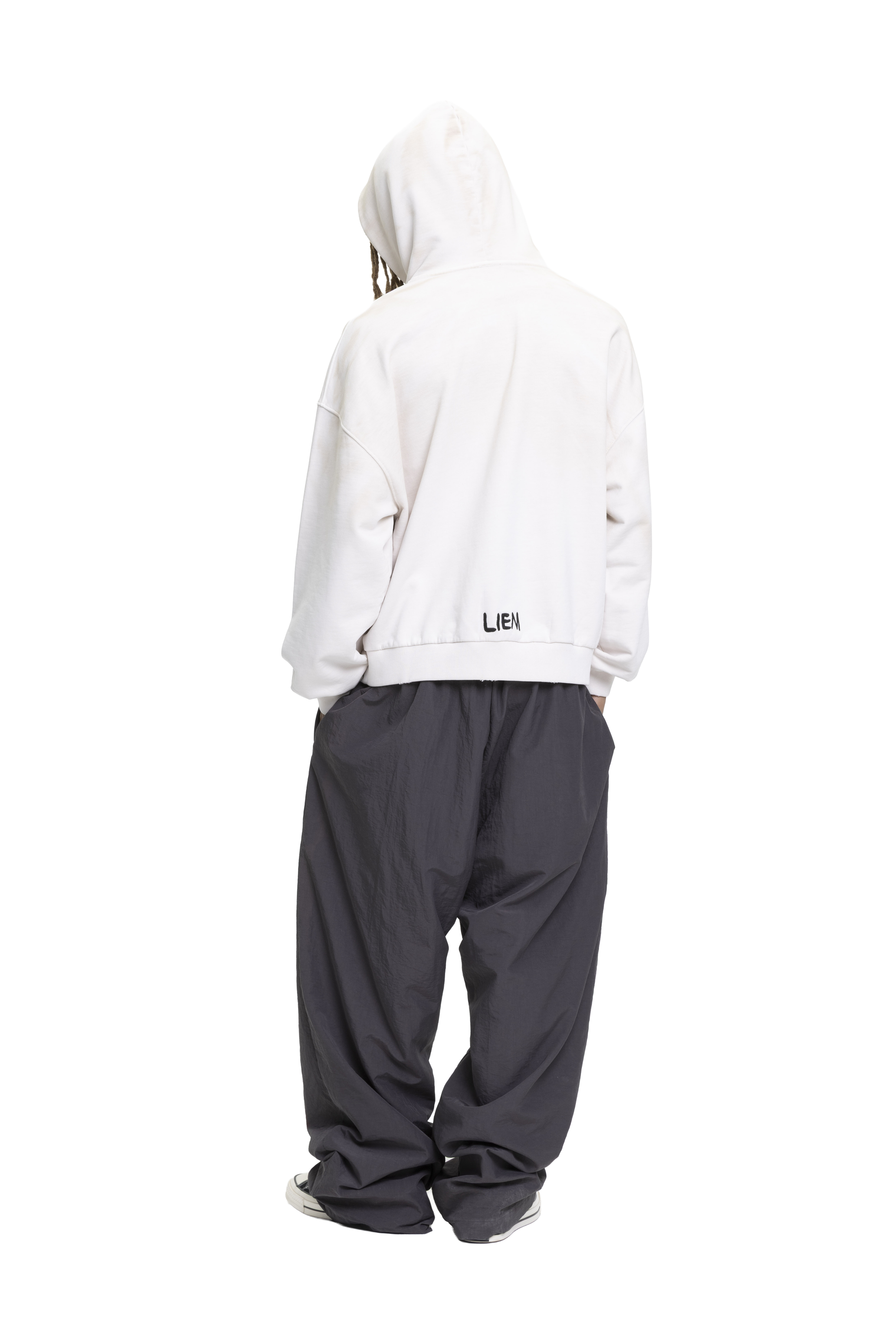 Oversized hoodie crafted from 420 GSM high-quality brushed cotton. Finished with a stone wash and vintage-effect spray for a worn-in look. Features the signature „I need a Hug“ screen print at the front.